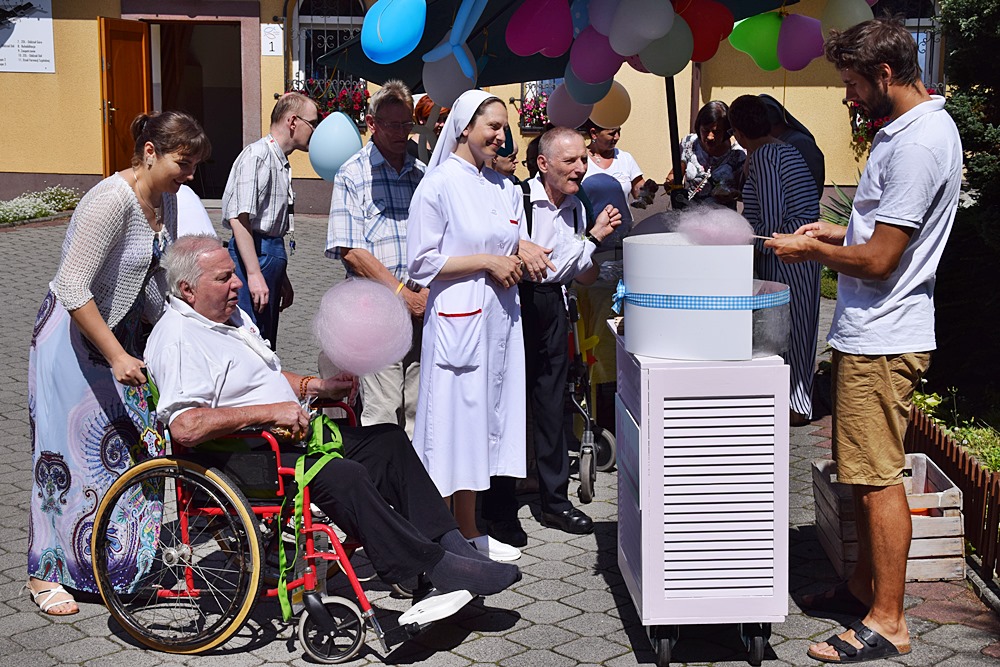 Pan Jezus w odczytanej w dniu dzisiejszym Ewangelii wielokrotnie powtórzył nam słowo „Błogosławieni”. Błogosławieństwo Pana stało się też naszym udziałem, gdyż mogliśmy wspólnie świętować wspomnienie naszego patrona, Edmunda Bojanowskiego oraz założyciela naszego ośrodka, księdza Stanisława Pawłowskiego w 25 rocznicę jego śmierci. Zaczęliśmy od najważniejszego spotkania, czyli Eucharystii, którą koncelebrowali księża: Andrzej Kamiński (dyrektor Caritas Archidiecezji Krakowskiej), który skierował do nas Słowo Boże; Jacek Wieczorek (proboszcz parafii Zator) oraz Krzysztof Wieczorek (gospodarz Naszego Domu). Liturgia była bardzo uroczysta również dzięki zaangażowaniu w nią Naszych mieszkańców, pacjentów, pracowników oraz wolontariuszy. Jak przystało na obchody „odpustowe” nie mogło zabraknąć: „Kramiku Edmunda”, w którym można było dostać odpustowe ciasteczka oraz największej atrakcji, czyli waty cukrowej. Cały ten dzień był wspaniałym darem od Boga, który w swojej obfitości ofiarował nam również piękną pogodę – wykorzystaliśmy ją spędzając czas w ogrodzie. Dziękujemy wszystkim, którzy zechcieli wspólnie z nami świętować uczestnicząc we Mszy Świętej.