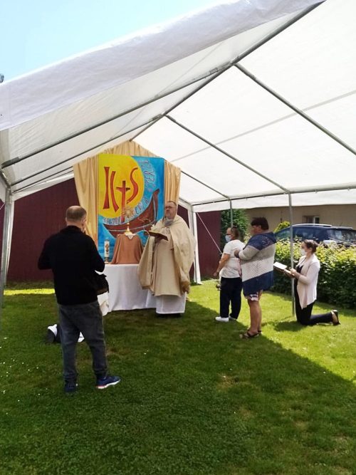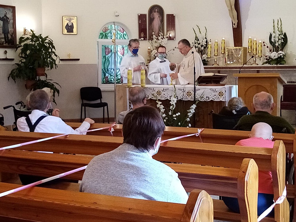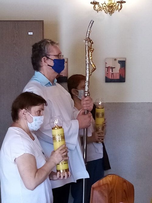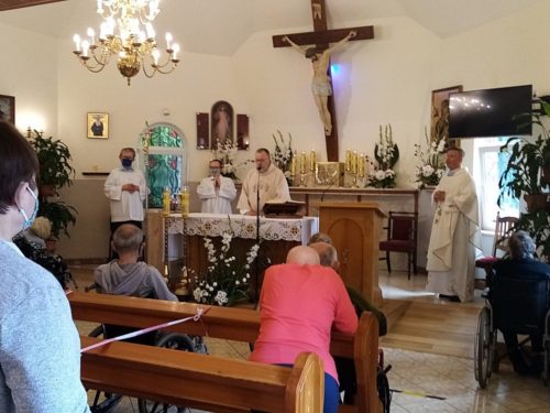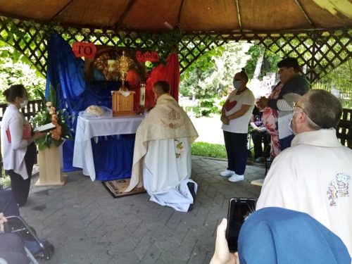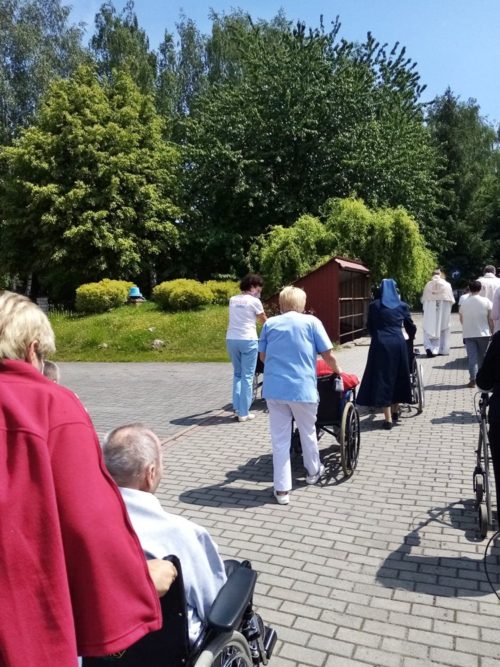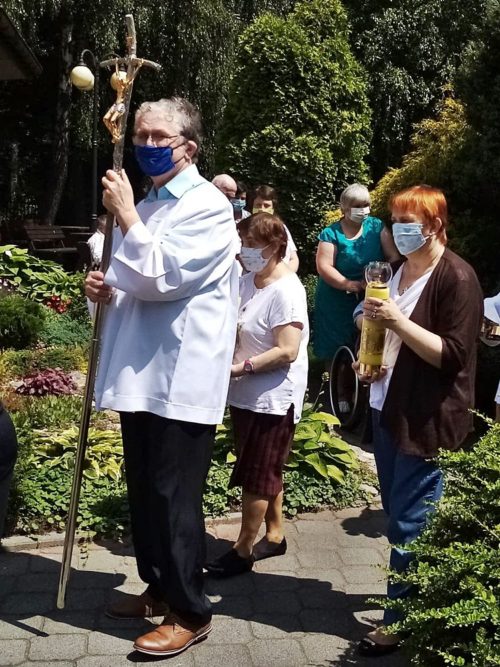60 dni po Wielkanocy obchodzimy Uroczystość Najświętszego Ciała i Krwi Pańskiej zwaną potocznie Bożym Ciałem. W tegorocznych obchodach Bożego Ciała, które odbyły się na terenie naszego ośrodka wzięli udział mieszkańcy, pacjenci i personel Domu. Msza Święta i procesja do czterech ołtarzy, przygotowanych na trenie ogrodu naszej zatorskiej Caritas, były okazją do wyznania wiary w obecność Jezusa Chrystusa w Najświętszym Sakramencie, oddania Mu czci i podziękowania za łaski płynące przez ten Sakrament.