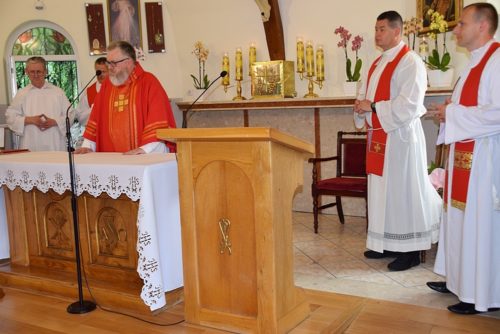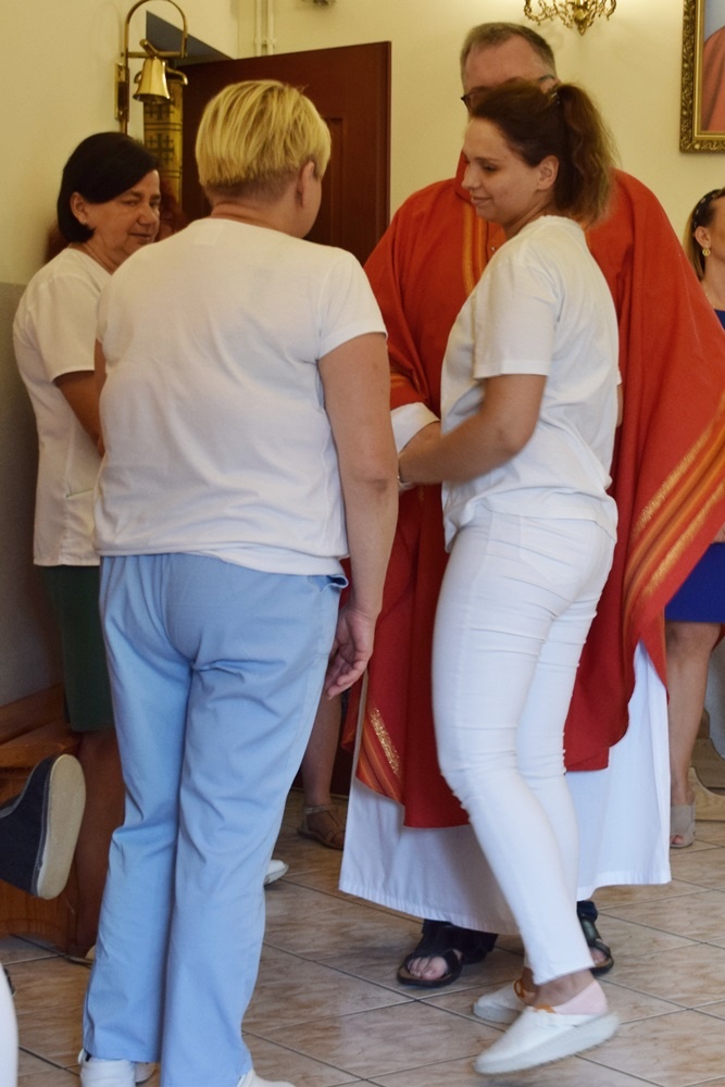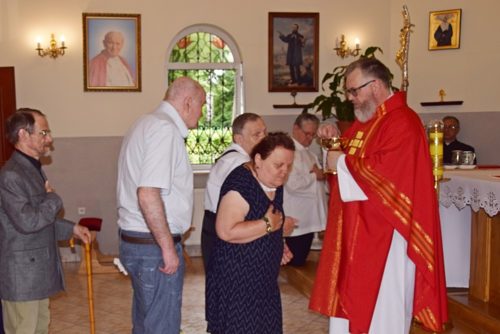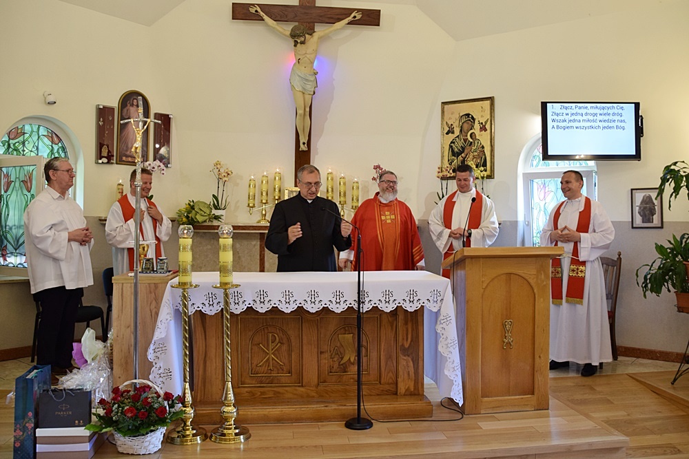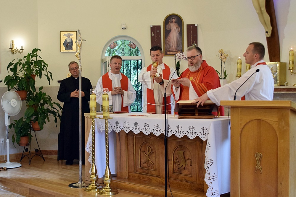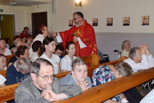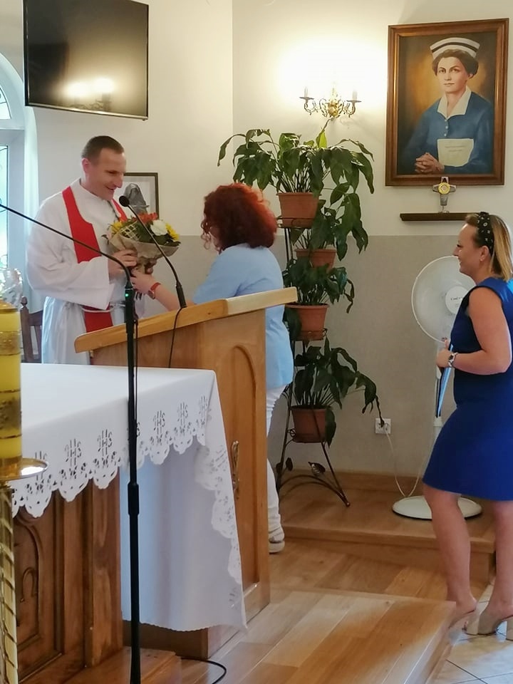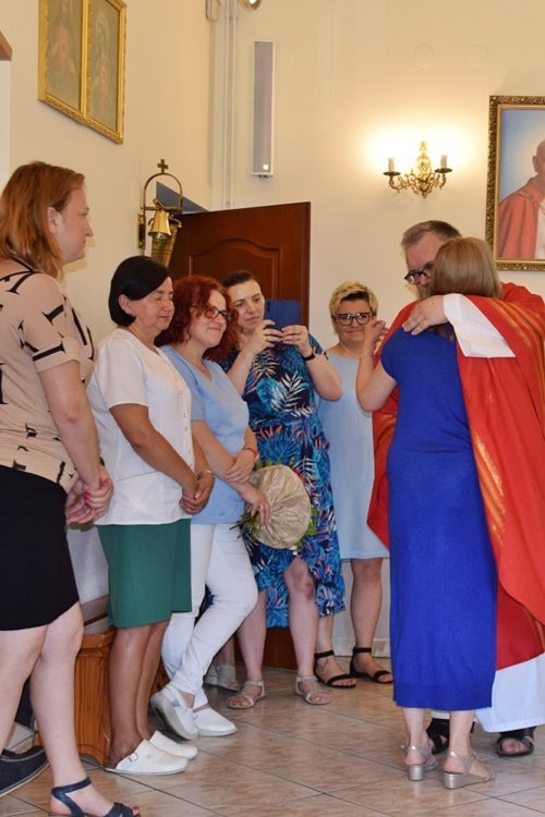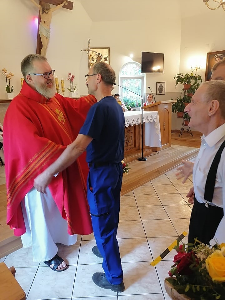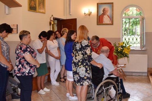 Ze wzruszeniem, ale i z ufnością żegnaliśmy dziś księdza Krzysztofa – dotychczasowego dyrektora naszego ośrodka, który za kilka dni rozpoczyna pracę duszpasterską w parafii św. Barbary w Trzebini-Wodnej Krystynowie. W ramach pożegnania odbyła się dziś uroczysta Msza Święta, w której pacjenci, mieszkańcy i personel ośrodka wspólnie dziękowali za dotychczasowe lata pracy księdza Krzysztofa, tu w zatorskim Domu Caritas. W dzisiejszej mszy wspólnie z nami modlili się ks. Tomasz Stec – nowy dyrektor Caritas Archidiecezji Krakowskiej oraz ks. Rafał Buzała – powołany na stanowisko dyrektora w naszym ośrodku, którego serdecznie przywitaliśmy życząc wszystkiego co najlepsze na ten nowy dla Niego zawodowo – duszpasterski czas.