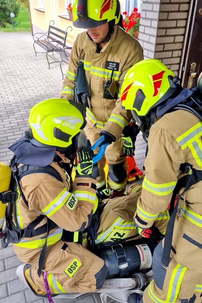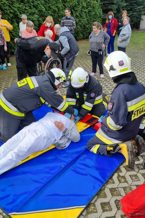 W dniu 20.10.2021 roku Państwowa Straż Pożarna w Oświęcimiu, we współpracy z Ochotniczą Strażą Pożarną z Zatora i Podolsza, przeprowadziła na terenie naszego ośrodka szkolenie przeciwpożarowe. Jego celem było zapoznanie pracowników i podopiecznych z praktycznym zastosowaniem zasad ewakuacji w sytuacji potencjalnego pożaru.