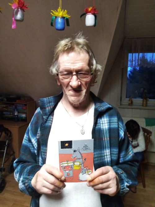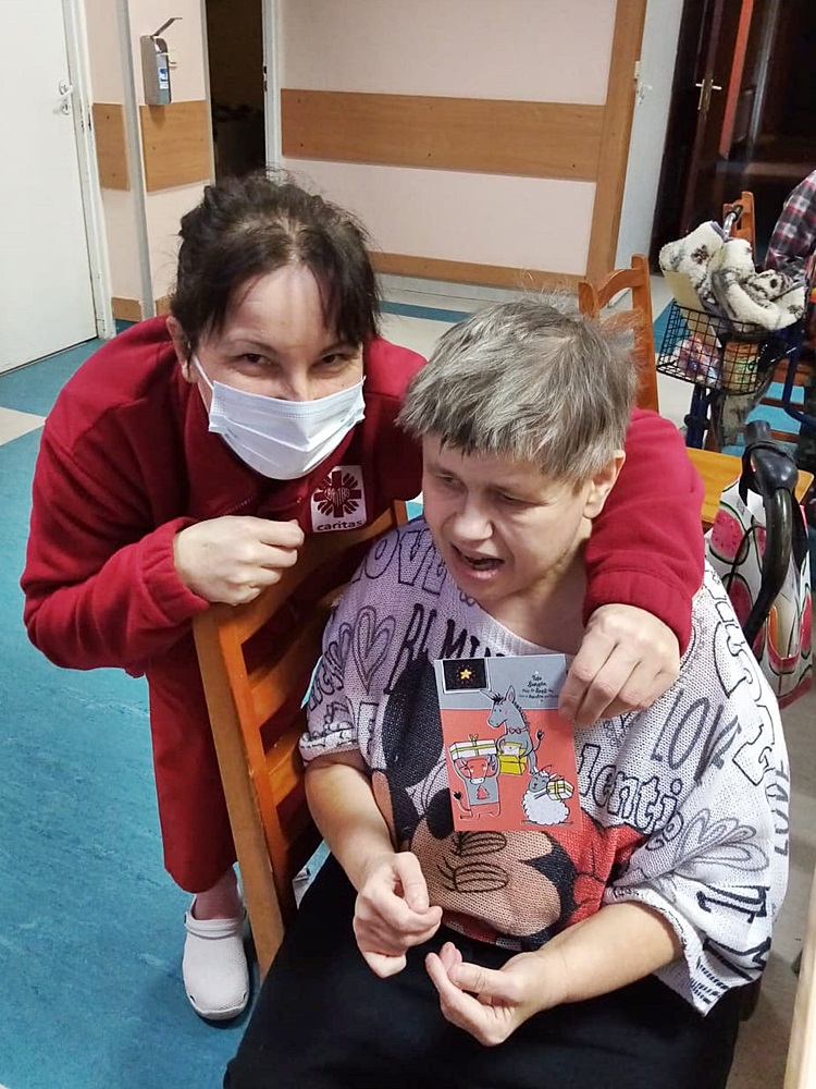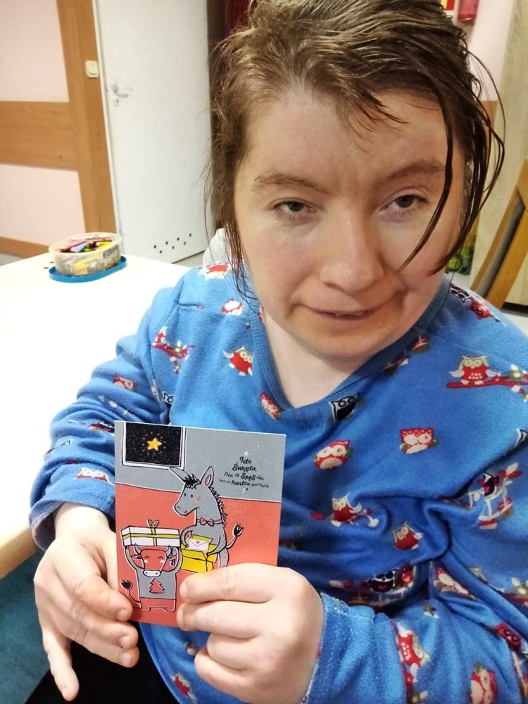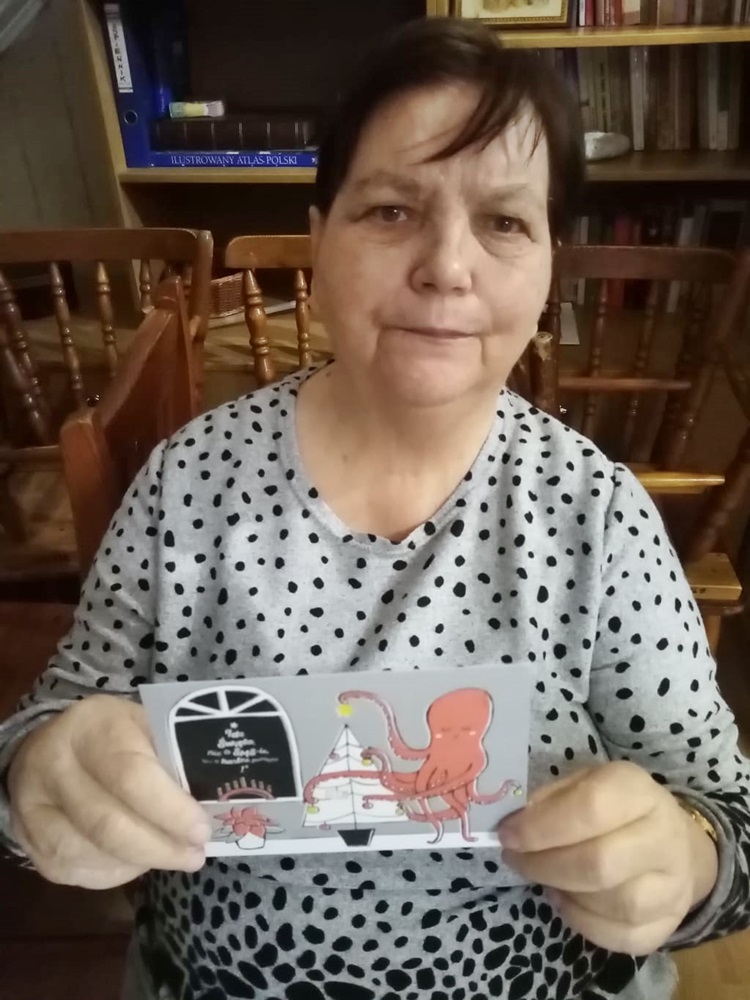 15 grudnia br. p. Marzena Srokosz-Mokwa, pedagog WZS im. Rotmistrza Witolda Pileckiego w Zatorze, w imieniu nauczycieli i uczniów szkoły, przekazała dla mieszkańców DPS i pacjentów ZOL życzenia i kartki z okazji Świąt Bożego Narodzenia. 89 pięknych kartek trafiło do naszych podopiecznych, którzy z radością je przyjęli.