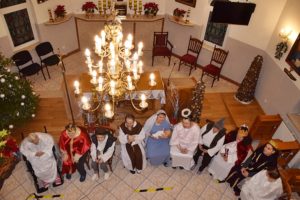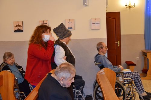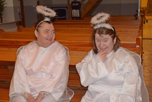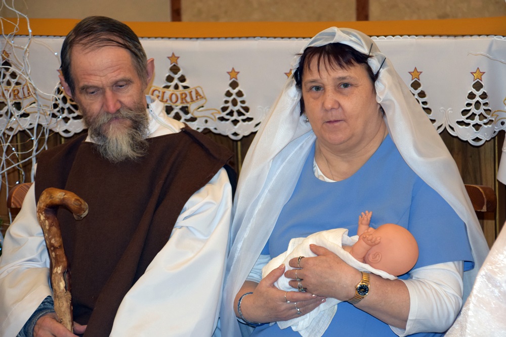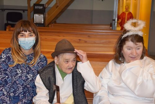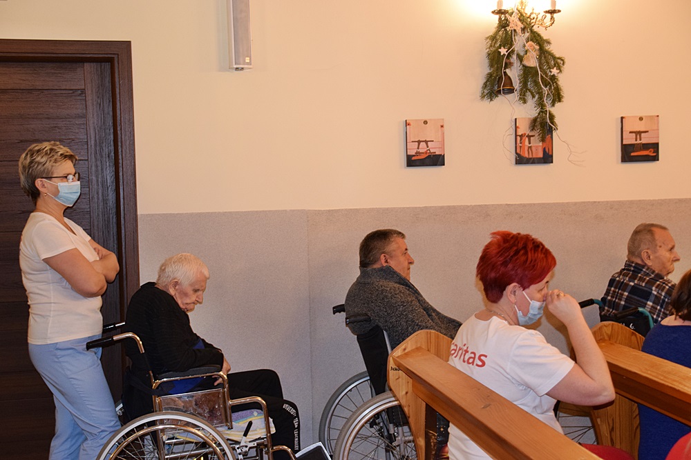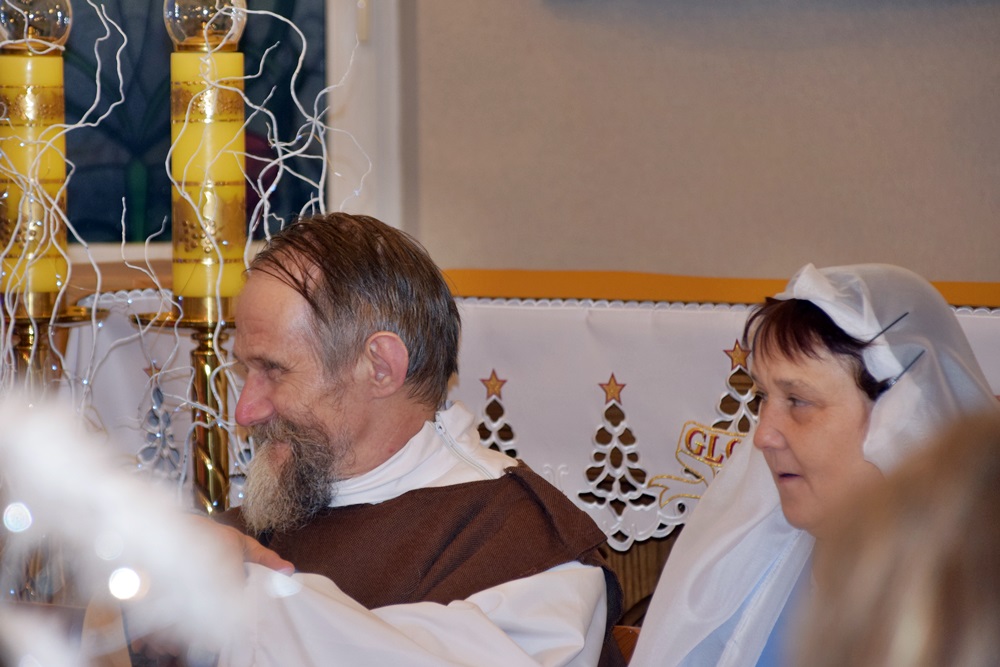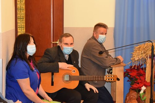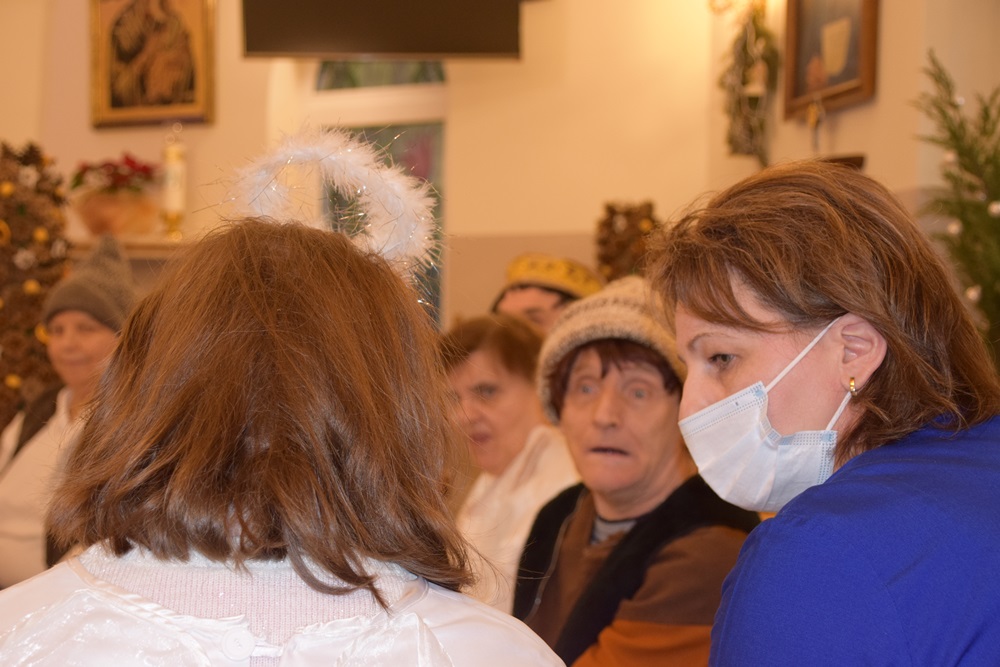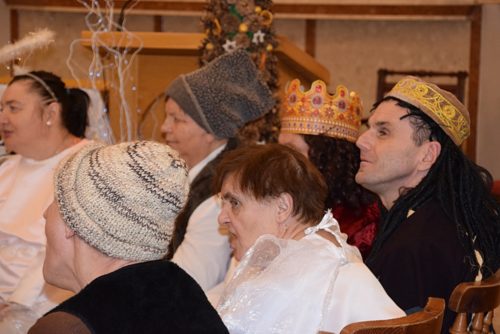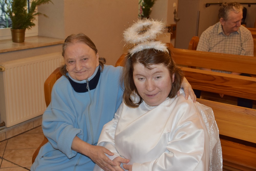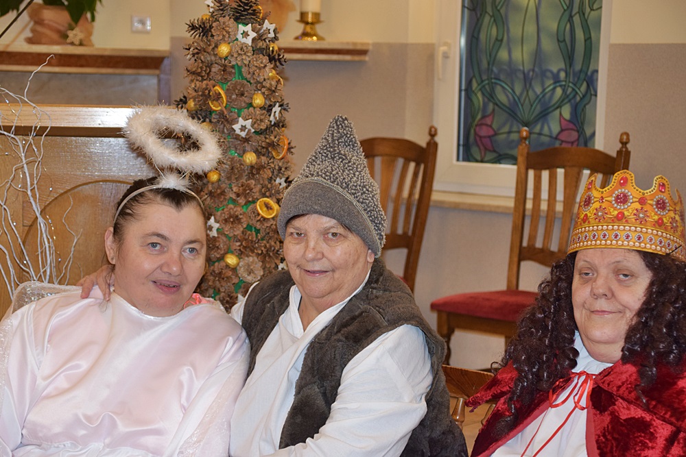 Mieszkańcy Domu, którzy wcielili się w role: Maryi, św. Józefa, Trzech Króli, Aniołów i Pasterzy skutecznie zachęcili zgromadzonych w kaplicy do wspólnego śpiewu i radosnego wychwalania narodzin Dzieciątka Jezus.