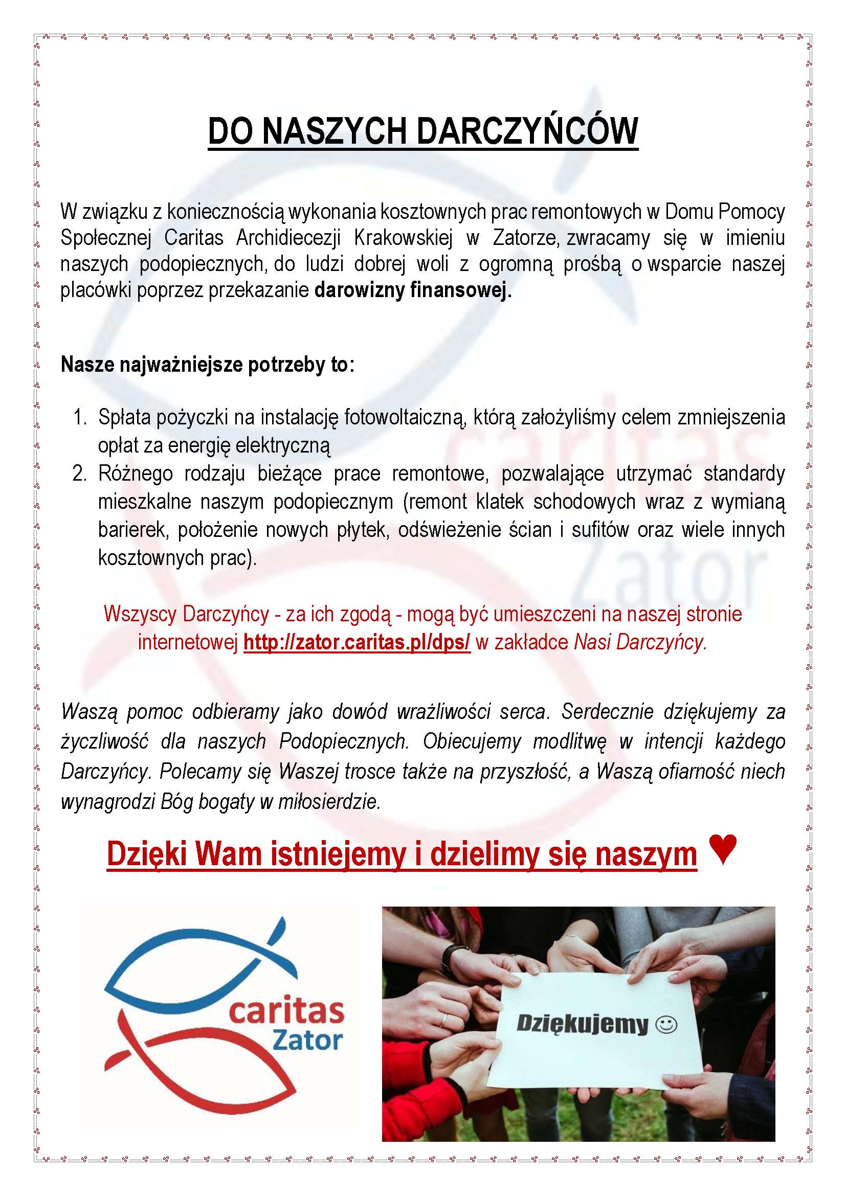 W imieniu naszych podopiecznych, zwracamy się do ludzi dobrej woli z prośbą o wsparcie naszej placówki przez przekazanie na nasze potrzeby 1% podatku.