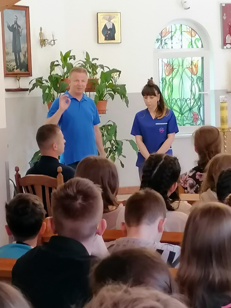Spotkanie to miało na celu przybliżyć naszym gościom specyfikę Domu Pomocy Społecznej oraz Zakładu Opiekuńczo–Leczniczego tj. kim jest mieszkaniec DPS-u oraz kim jest pacjent ZOL-u, dalej – jakie są cele funkcjonowania ośrodków, czym jest niepełnosprawność intelektualna, jakich trudności zdrowotnych, życiowych doświadczają nasi podopieczni. Podczas spotkania próbowano opowiedzieć o nadrzędnej, pierwszoplanowej wartości promowanej w naszym ośrodku tj. wartości bycia z drugim człowiekiem – tworzeniu relacji bezpiecznej, której budowanie w kontakcie z podopiecznymi w koncepcji funkcjonowania zatorskiego ośrodka jest kluczowe.