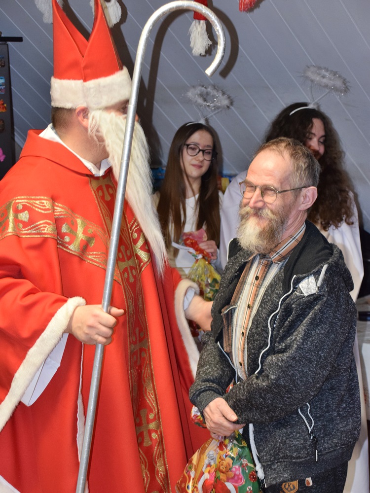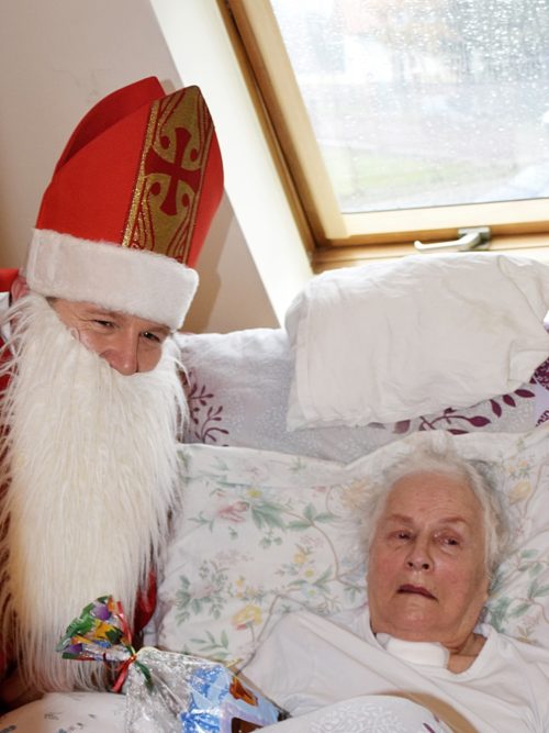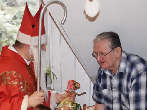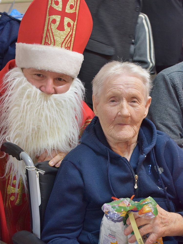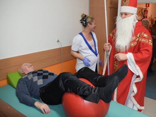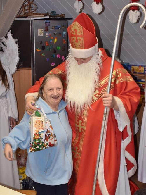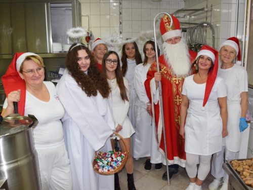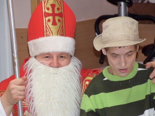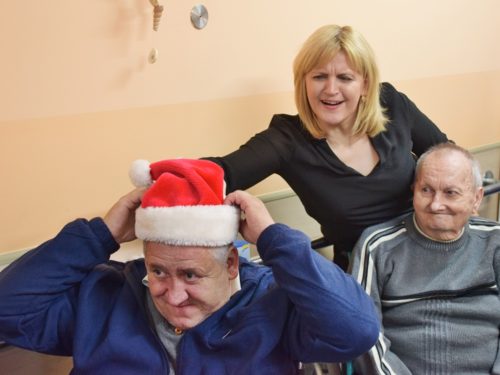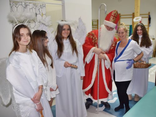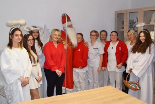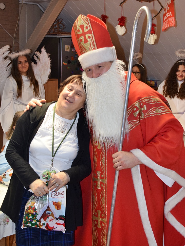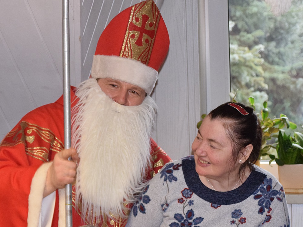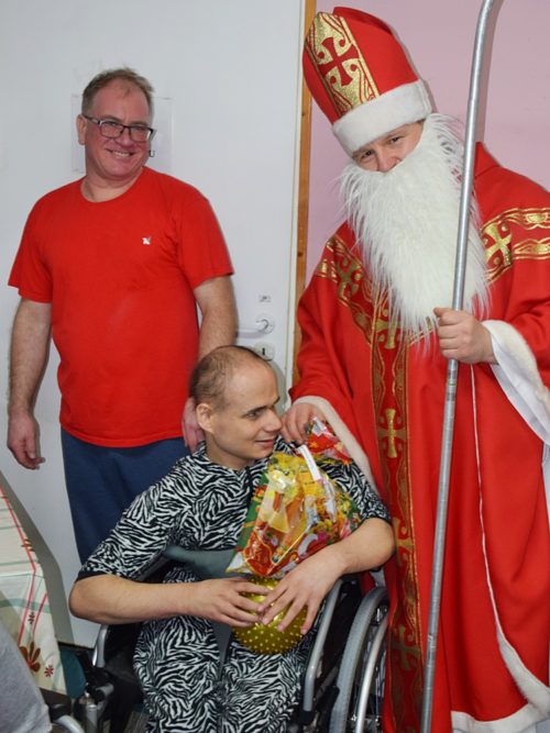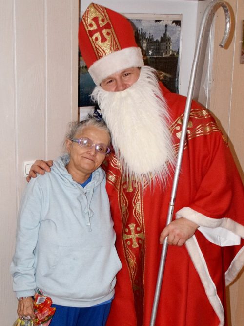 W dniu 06.12.2022 r. nasz ośrodek odwiedził Święty Mikołaj. Towarzyszył mu orszak w składzie: Śnieżynki (w tej roli wystąpiły wolontariuszki-uczennice zatorskiego Wielozawodowego Zespołu Szkół) oraz nasi pracownicy. Oprawę muzyczną zapewniła nam wolontariuszka Agnieszka. Święty Mikołaj ubrany w tradycyjny strój biskupi, z pastorałem i workiem pełnym prezentów był zaskoczeniem dla wszystkich podopiecznych. Odwiedził poszczególne grupy Domu Pomocy Społecznej oraz Zakład Opiekuńczo-Leczniczy, wręczając mieszkańcom oraz pacjentom drobne upominki. Spotkanie ze Świętym Mikołajem wywołało wielką radość, uśmiech i wzruszenie wśród naszych podopiecznych. Postać Świętego Mikołaja w jakimś sensie ożywia uśpioną w nas dziecięcość, potrzebę wiary, że jest gdzieś ktoś, kto o nas myśli, zna nasze najskrytsze, największe marzenia i pragnie je spełnić, że dla tego kogoś jesteśmy ważni bez względu na to, czy jesteśmy bardziej, czy mniej utalentowani i dla kogo nie ma absolutnie żadnego znaczenia, czy dobrze radzimy sobie w życiu. To postać, która odpowiada na naszą potrzebę bycia dostrzeżonym, docenionym i bezinteresownie obdarowanym. Święty Mikołaj nie zapomniał także wręczyć słodyczy pracownikom obecnym w tym dniu w pracy jak również powiedział miłe słowo, które wywołało wśród nich uśmiech. Na koniec spotkania zrobiliśmy pamiątkowe zdjęcia, które będą nam przypominać o tym radosnym dniu w naszym Ośrodku.