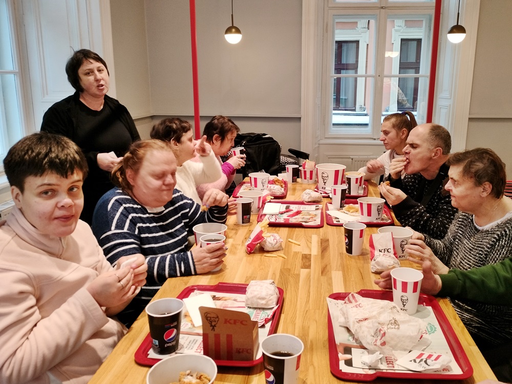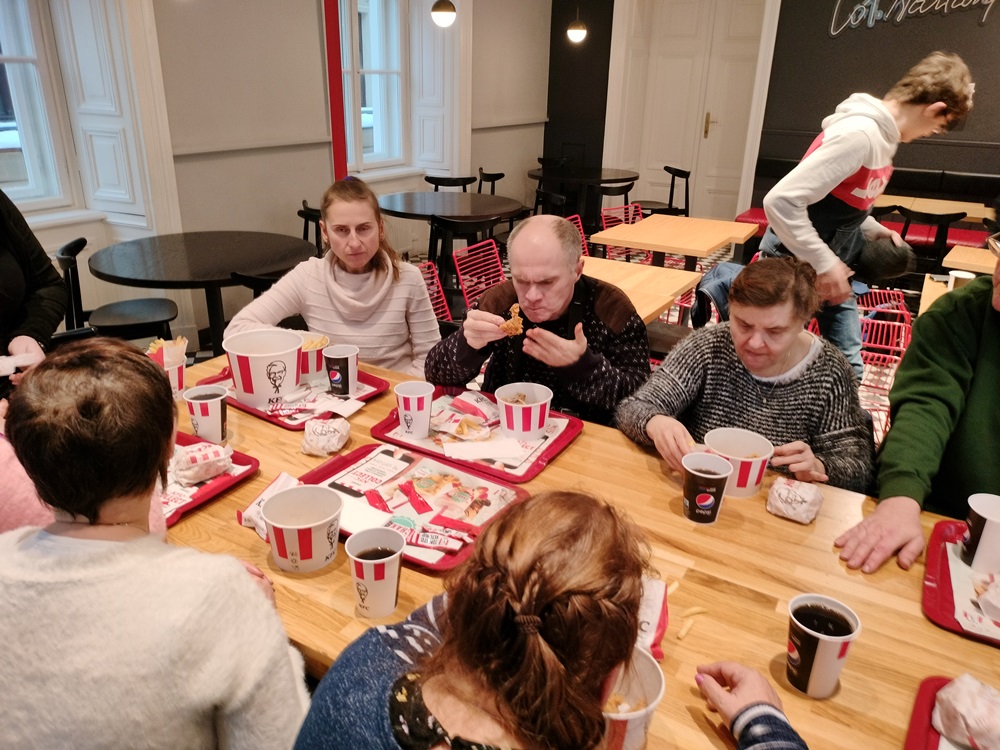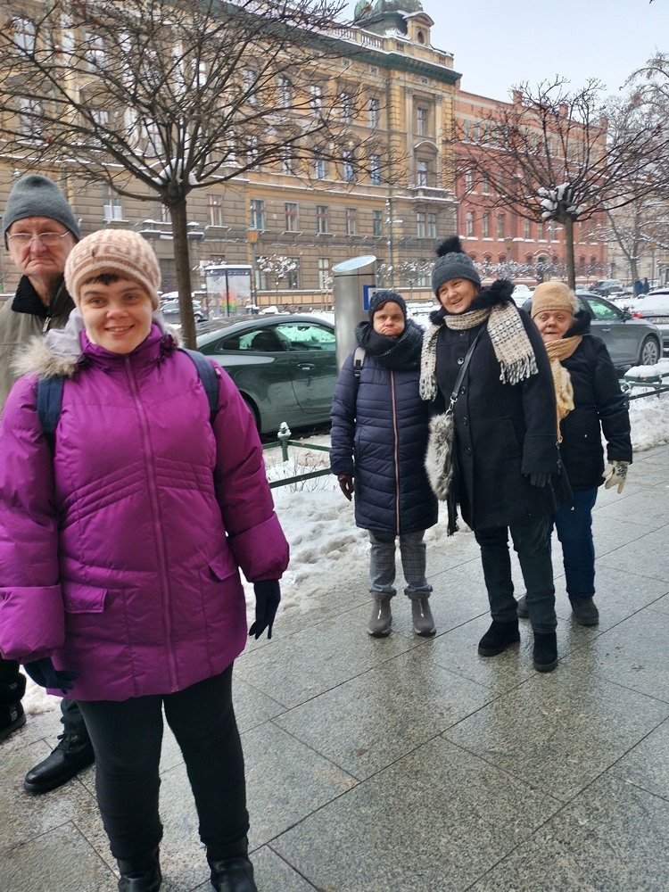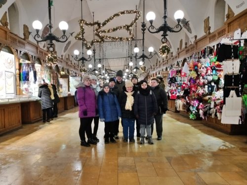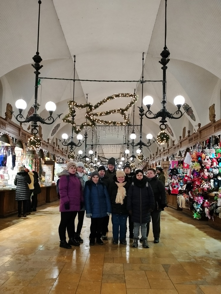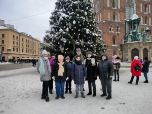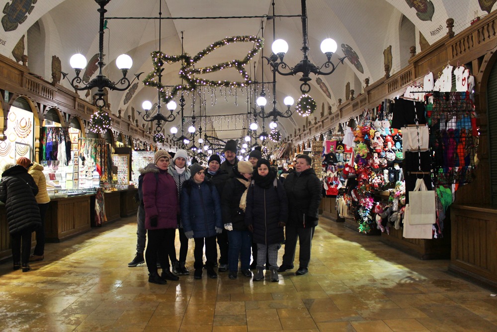 W dniu 14.12.2022 małą grupą mieszkańców wybraliśmy się na całodniową wycieczkę pociągiem do Krakowa. Tam najpierw udaliśmy się do Galerii Krakowskiej na shopping i coś słodkiego. Pomimo bardzo mroźnej pogody spacerkiem udaliśmy się do Rynku, by zobaczyć Jarmark Bożonarodzeniowy, który był naszym głównym celem. Potem przyszedł czas na obiad i tak wspólnie zasiedliśmy przy dużym stole w KFC i zjedliśmy małe co nie co. Gdy się już ściemniło ponownie poszliśmy podziwiać piękną choinkę i światełka rozświetlające cały Rynek. To był dla nas miło spędzony czas.