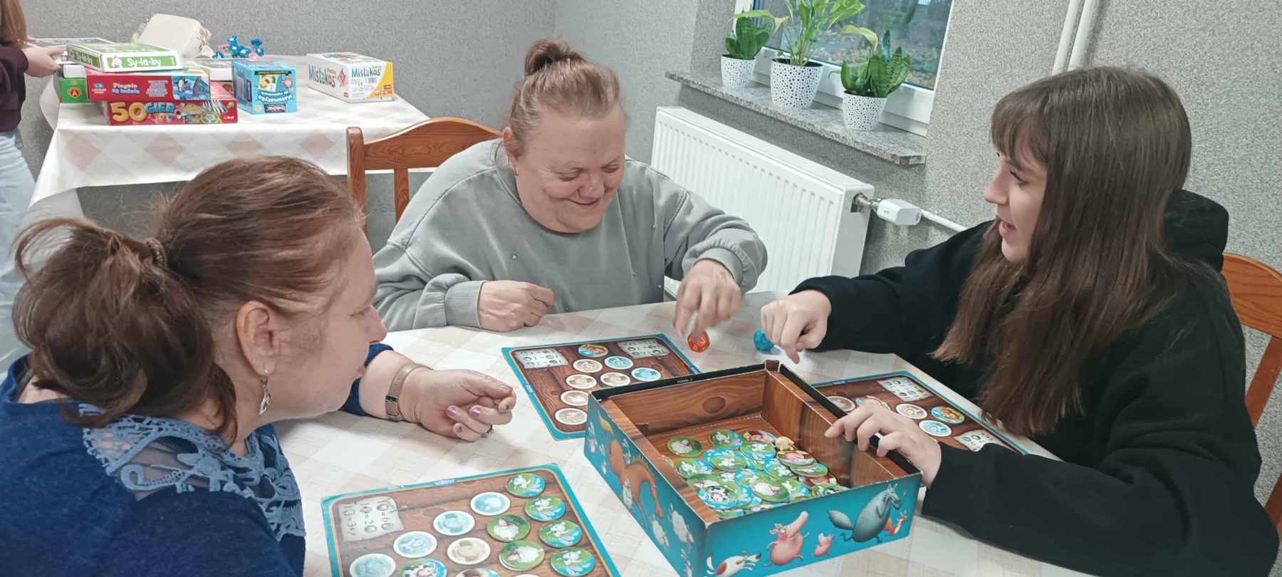 28 października br na terenie naszego Domu uczniowie – wolontariusze ze Szkoły Podstawowej w Graboszycach wraz ze swoimi szkolnym opiekunami odwiedzili naszych podopiecznych , wznawiając tym samym współpracę z nami po wakacyjnej przerwie . Gry planszowe i inne stolikowe przygotowane przez wolontariuszy rozwijały komunikację , współdzałanie i wzajemne relacje. Dobra atmosfera towarzysząca spotkaniu i zaangażowanie wolontariuszy zasługują na słowa uznania. Dziękujemy!