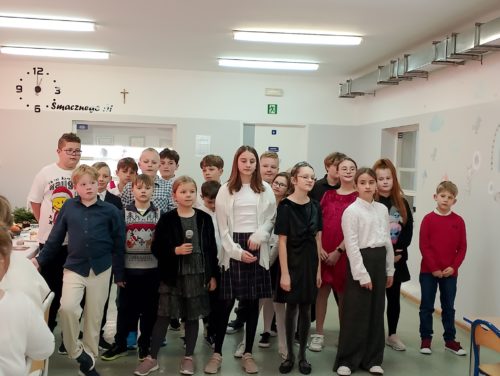 a następnie udaliśmy się na wigilijkę, którą przygotowała dla nas klasa 4 z Panią Moniką i Panią Magdaleną na czele.