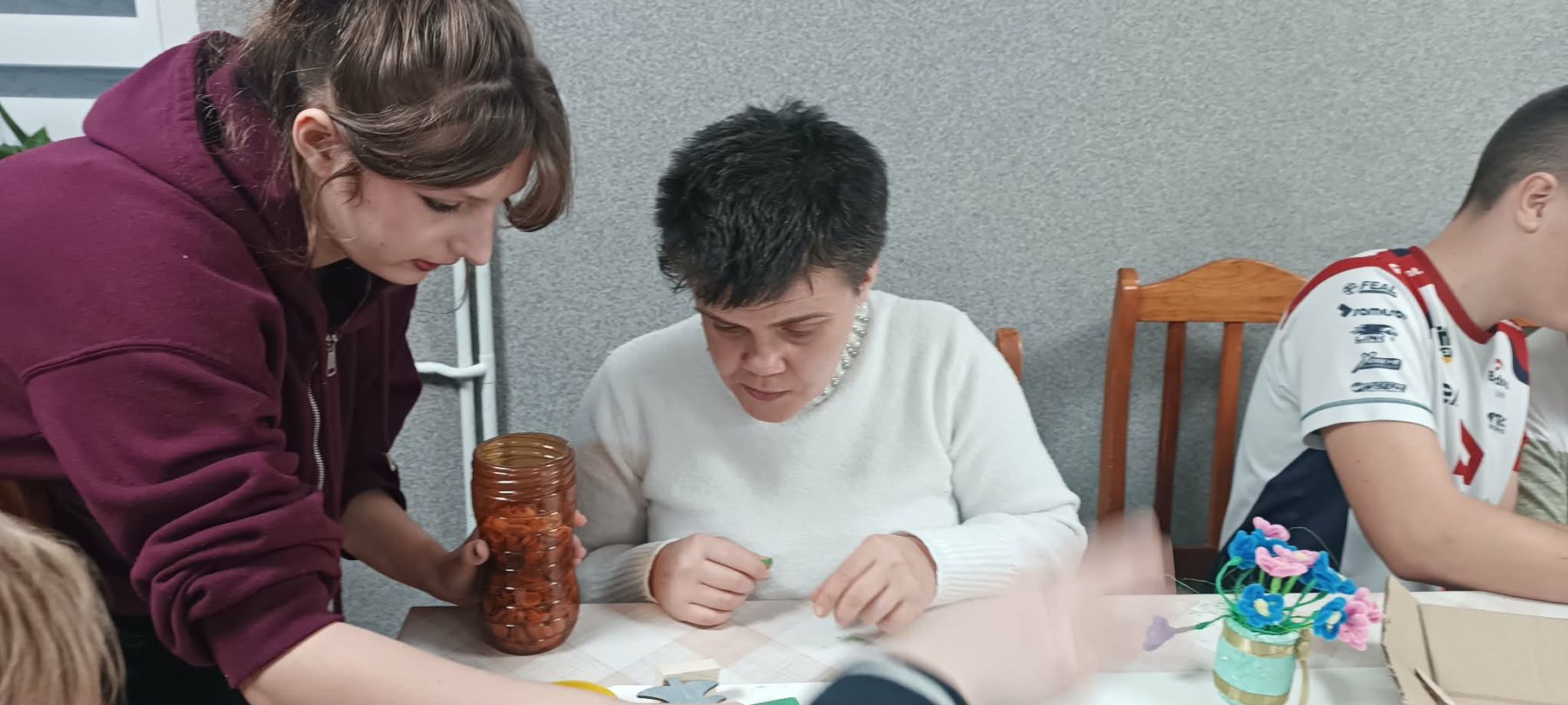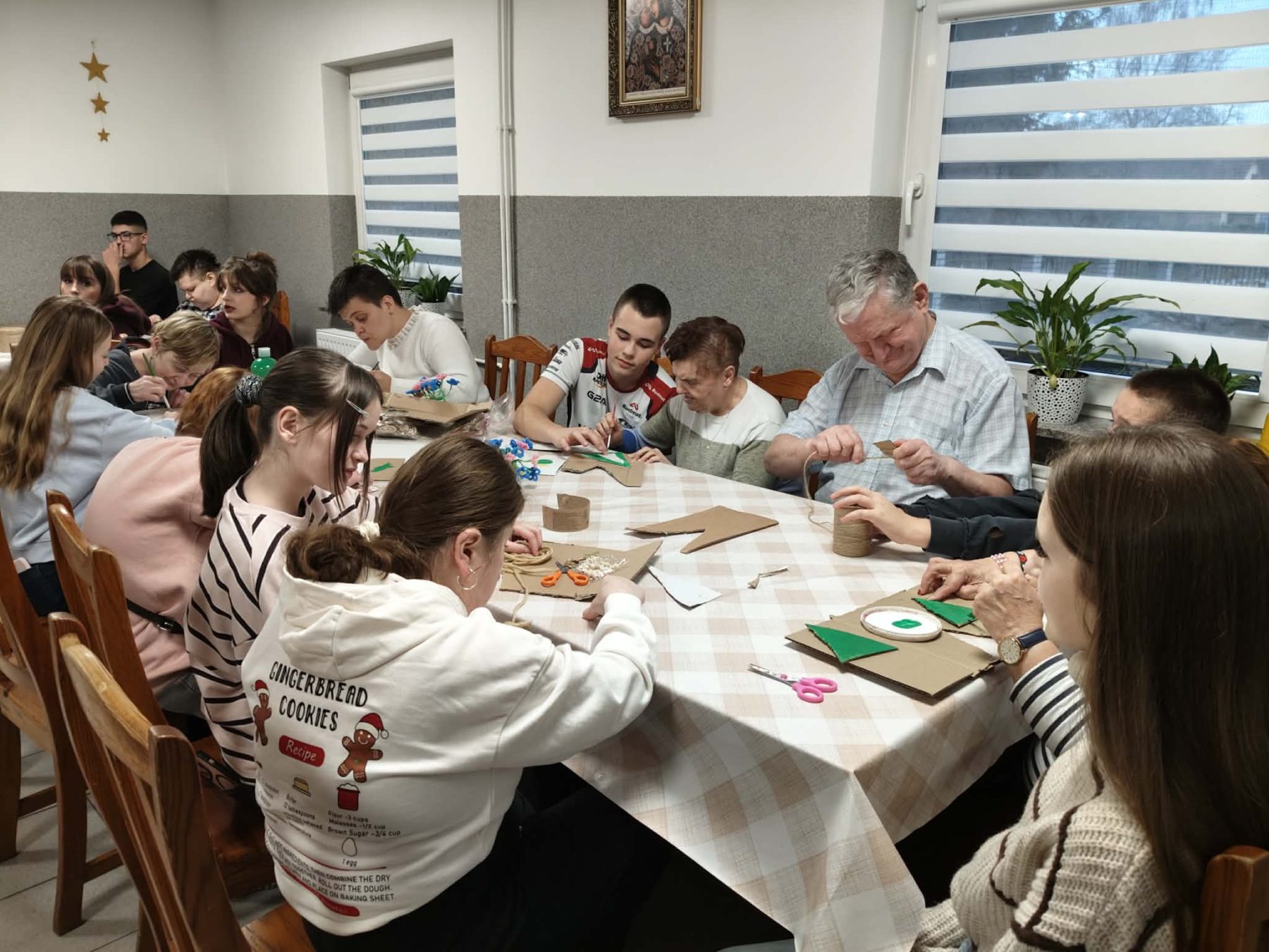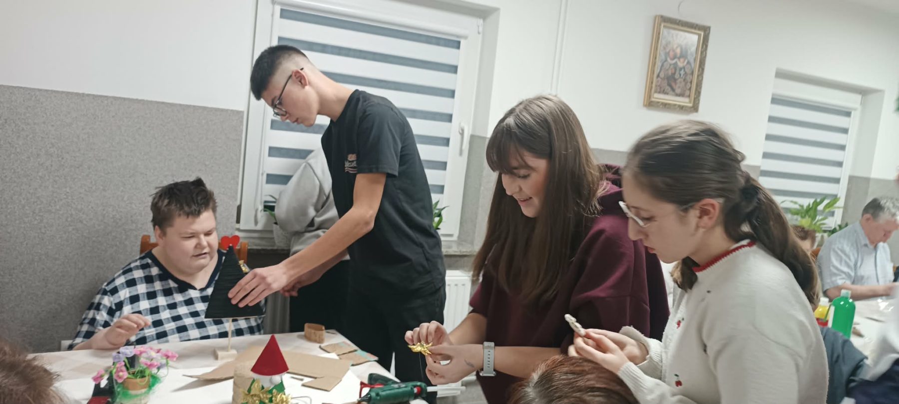 17 grudnia br. na terenie naszego ośrodka odbyły się warsztaty plastyczne zorganizowane przez wolontariuszy z SP Graboszyce. Podczas zajęć uczestnicy spotkania tj pacjenci ZOL i mieszkańcy DPS we współpracy z organizatorami- wykonywali papierowe choinki . Zajęcia te były doskonałą okazją do kultywowania tradycji świątecznych , rozwijania sprawności manualnych a przede wszystkim do wzmacniania wzajemnych kontaktów