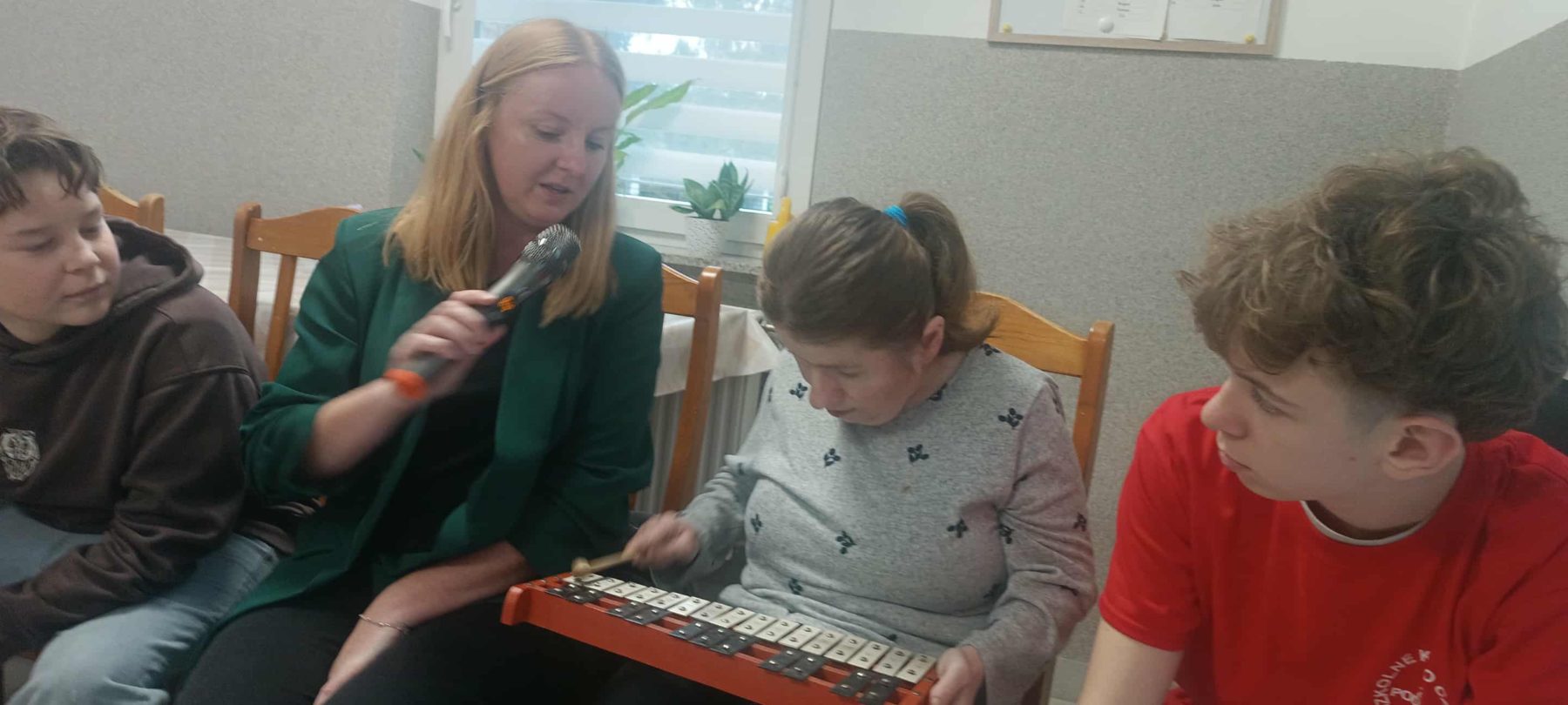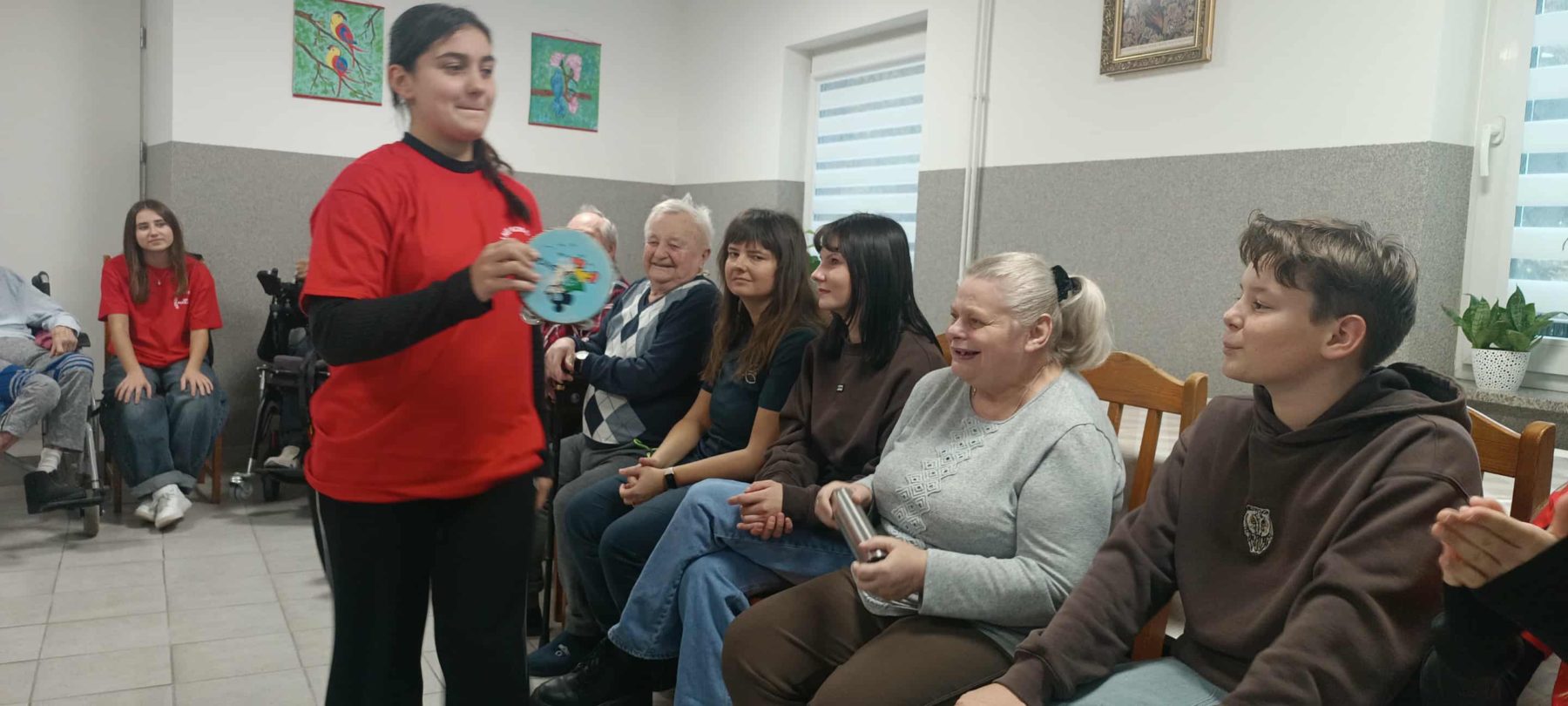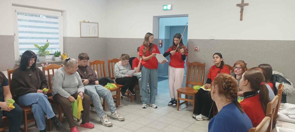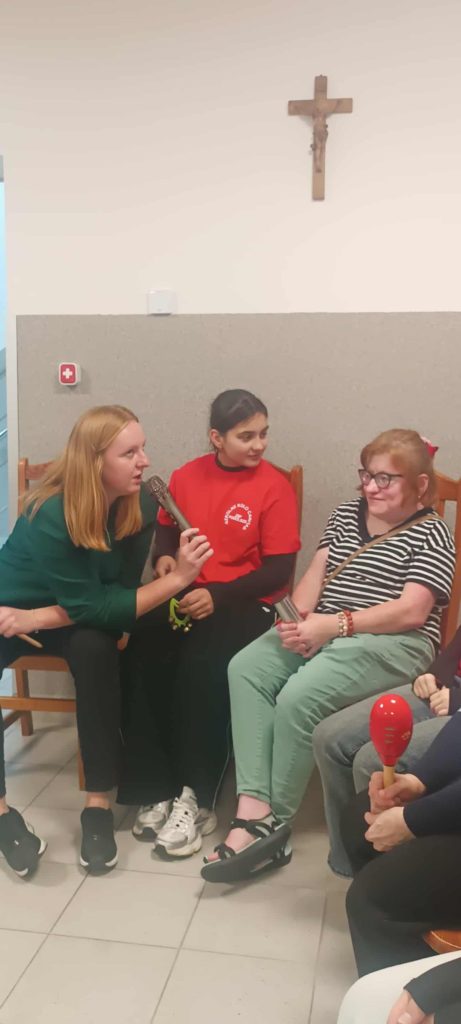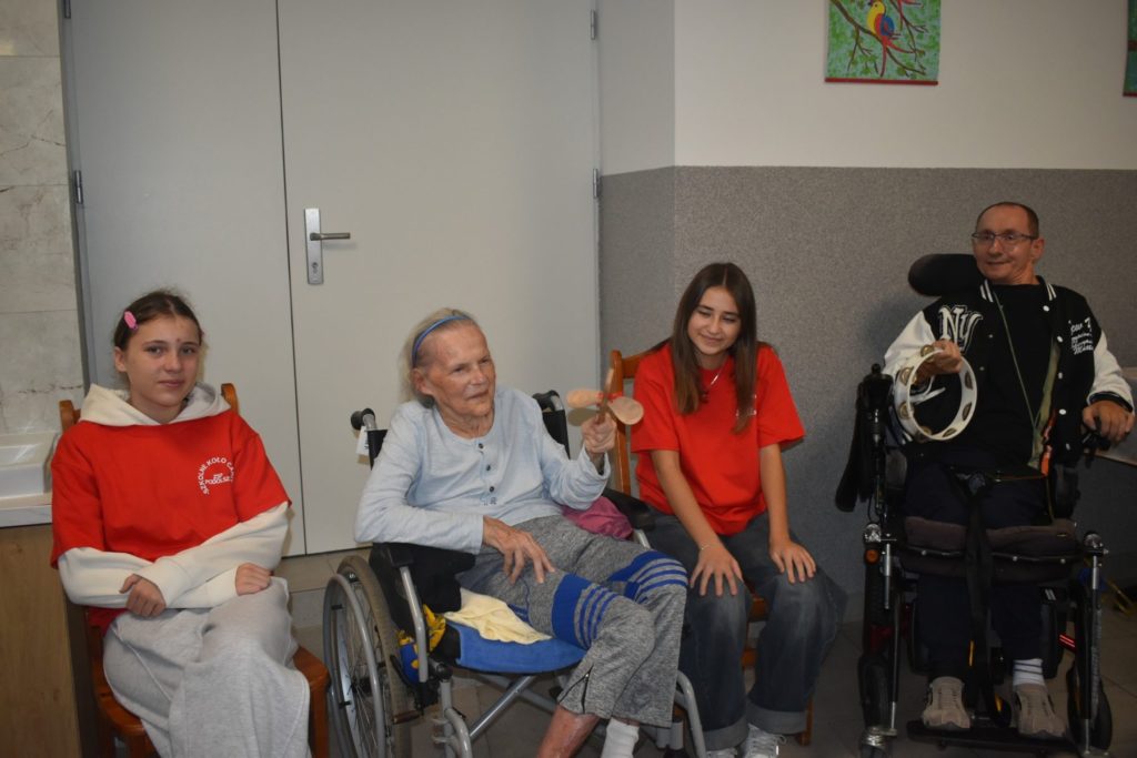 23. 10. br odwiedzili nas wolontariusze ze Szkoły Podstawowej w Podolszu. Było to nasze pierwsze spotkanie po przerwie wakacyjnej, wyczekiwane z niecierpliwością przez mieszkańców DPS i pacjentów ZOL. Nasi goście zaproponowali nam zajęcia muzyczne. Mieliśmy okazję obejrzeć i wypróbować różne ciekawe instrumenty, porozmawiać na temat ulubionych piosenek i wspólnie pośpiewać. Spotkanie dało nam możliwość, by zacieśnić relacje i dobrze się bawić.